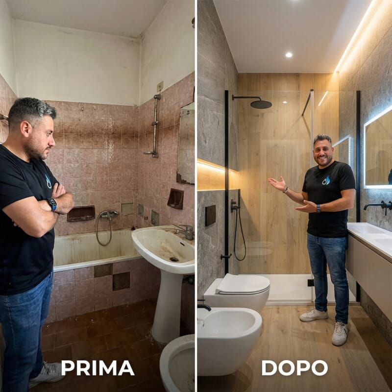 Non imbatterti più in problemi come:Piastrelle rovinate, sanitari scomodi, doccia che perde, muffe e umidità, impianto datato che dà noie. E quando provi a partire, rimbalzi tra muratore, idraulico, elettricista e fornitore: tempi che slittano, costi che lievitano e zero visione d’insieme.